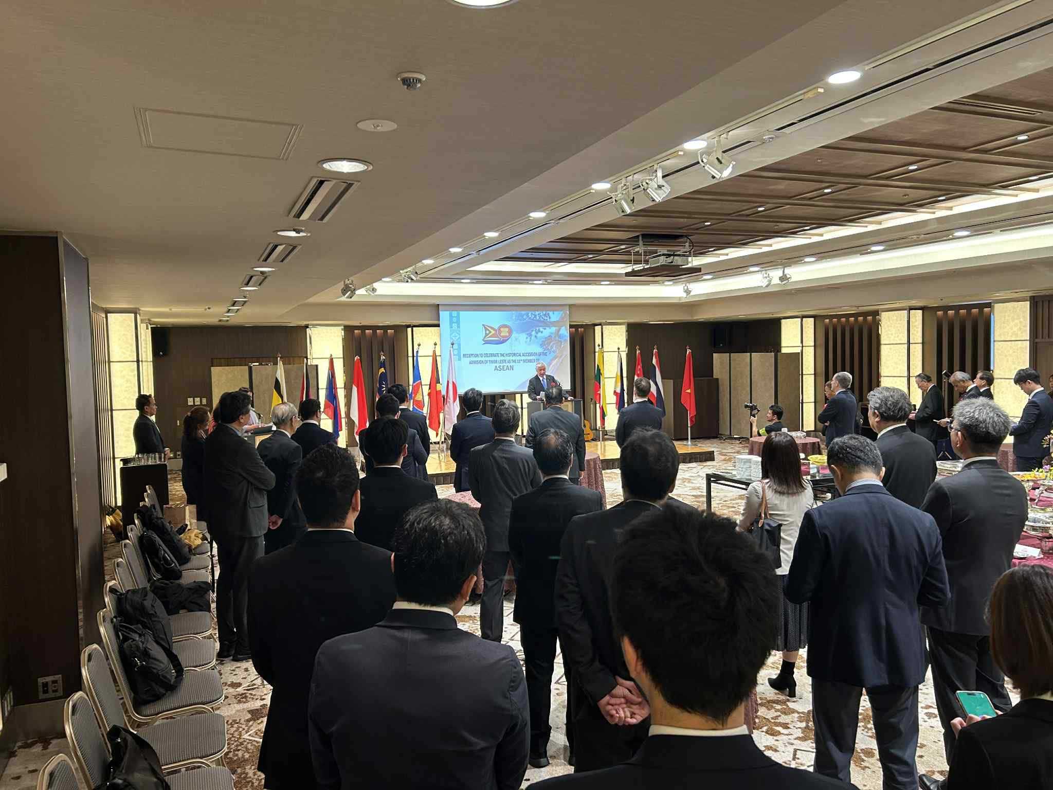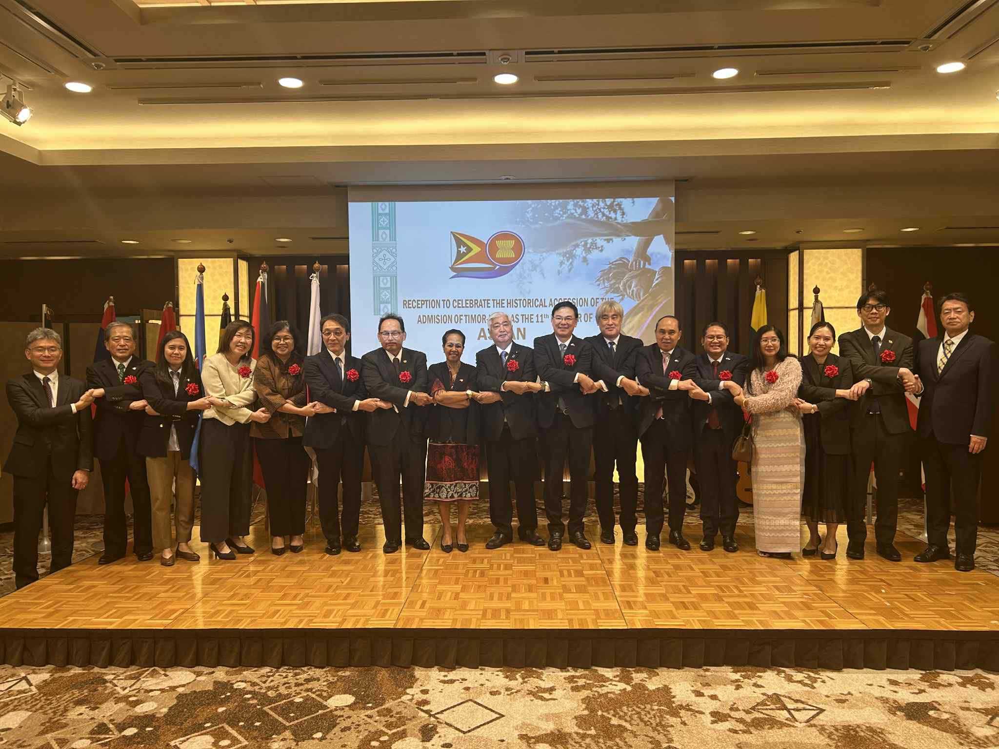សូមបញ្ជាក់ថា ប្រទេសទីម័រ ឡេស្តេ ត្រូវបានប្រកាសជាផ្លូវការជាសមាជិកថ្មីអាស៊ាន នៅថ្ងៃទី២៦ ខែតុលា ឆ្នាំ២០២៦ នៅក្នុងឱកាសកិច្ច ប្រជុំកំពូលអាស៊ាន លើកទី៤៧ នៅទីក្រុងគួឡាឡំពួរ ប្រទេសម៉ាឡេស៊ី។ ក្នុងពិធីជប់លៀងនេះ ឯកអគ្គរដ្ឋទូតម៉ាឡេស៊ី ប្រចាំប្រទេសជប៉ុន ក្នុងនាមជាប្រធានអាស៊ាន ព្រមទាំង ឯកឧត្តម Kunihiko Hirabayashi អគ្គលេខាធិការ នៃមជ្ឍមណ្ឌលអាស៊ាន-ជប៉ុន (ASEAN-Japan Center) និង ឯកឧត្តម Gen Nakatani អតីតរដ្ឋមន្ត្រីការពារប្រទេសជប៉ុន និងជាប្រធានសម្ព័ន្ធមិត្តភាពសភាជប៉ុន-ទីម័រ ឡេស្តេ ត្រូវបានអញ្ជើញឡើងថ្លែងសន្ទរកថា អបអរ សាទរ ដោយមានវត្តមានរបស់ បណ្តាឯកអគ្គរាជទូត/ឯកអគ្គរដ្ឋទូត តំណាងស្ថានទូតនានា ជាសមាជិកអាស៊ាន និងបណ្តាទូតផ្សេងទៀត និង មិត្តជប៉ុននានា កីត្រូវបានអញ្ជើញចូលរួមជាភ្ញៀវកិត្តិយសក្នុងពិធីនេះផងដែរ៕