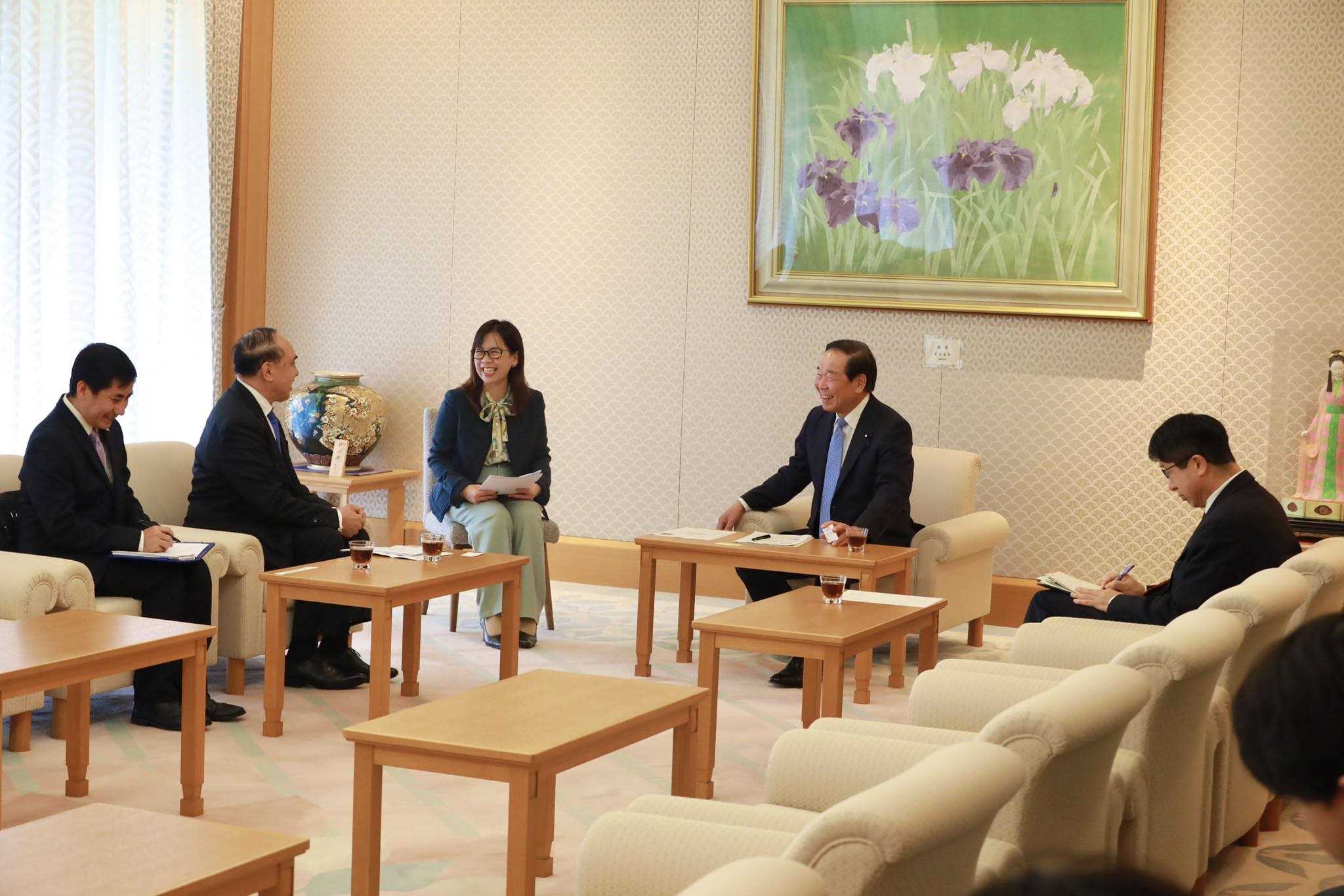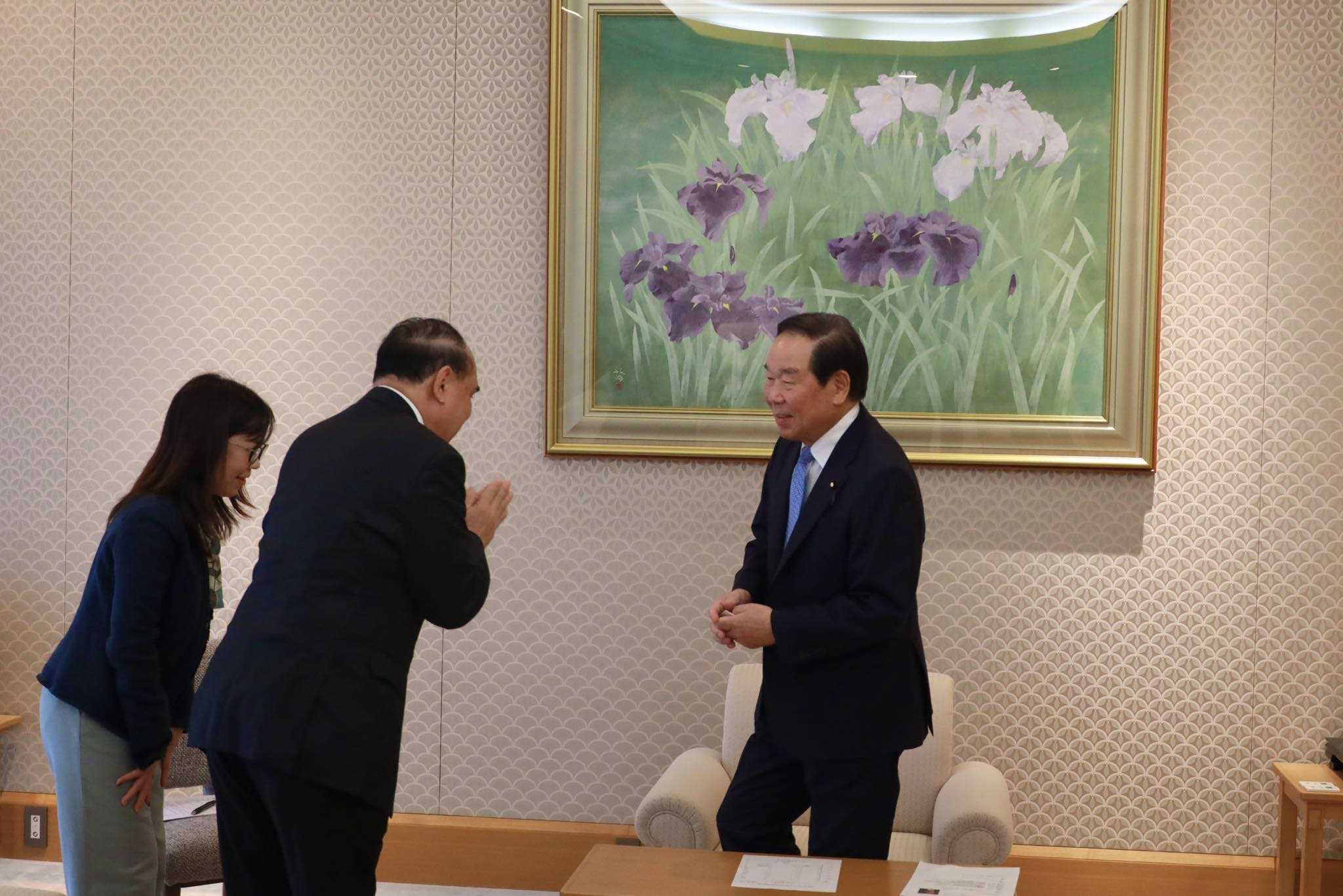 នៅព្រឹកថ្ងៃទី១៥ ខែតុលា ឆ្នាំ២០២៥ ឯកឧត្តម ទុយ រី ឯកអគ្គរាជទូតកម្ពុជាប្រចាំប្រទេសជប៉ុន អមដោយមន្ត្រីស្ថានទូត បានចូលជួបសម្តែងការគួរសម និងជម្រាបលា ឯកឧត្តម NUKAGA Fukushiro ប្រធានរដ្ឋសភាជប៉ុន។